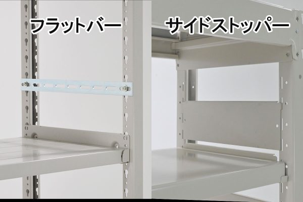 弊社では、業務用スチールラックの横からの本の落下を防ぐことができるフラットバー・サイドストッパーを販売中です。
