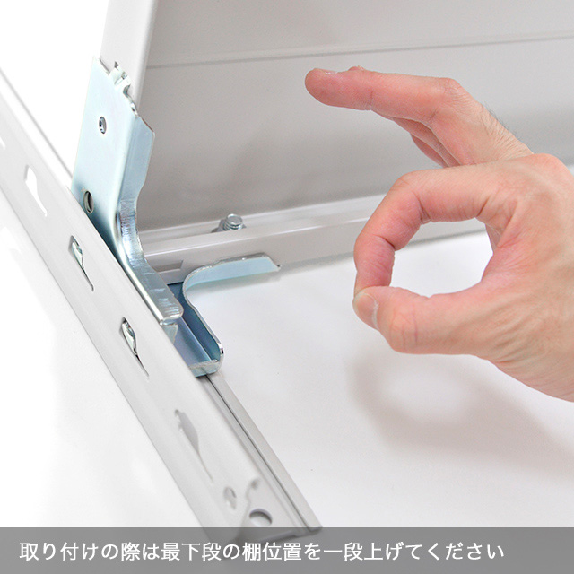 | ※必読 | 取り付けの際は最下段の棚位置を一段上げてください。 |