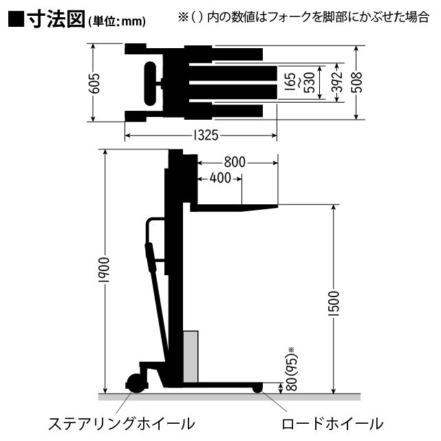 ※最低位の()内の数値はフォークを脚部にかぶせた場合です。