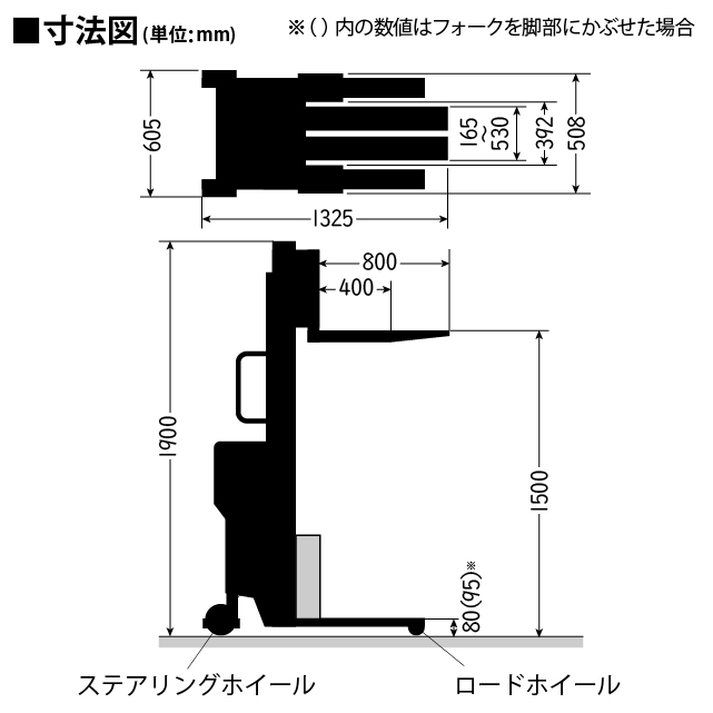 ※最低位の()内の数値はフォークを脚部にかぶせた場合です。